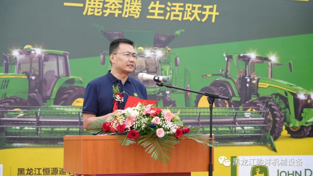 黑龍江恒源迪農(nóng)業(yè)發(fā)展有限公司總經(jīng)理杜立志發(fā)表了開場致辭(下圖)。他表示,作為迪爾授權(quán)經(jīng)銷商,恒源迪農(nóng)業(yè)將不負(fù)約翰迪爾公司和用戶朋友的信任與期待,砥礪前行、全心全力的將迪爾品牌的核心價值觀“誠實(shí)、優(yōu)質(zhì)、守信、創(chuàng)新”發(fā)揚(yáng)光大。公司有著完備的市場推廣、售后服務(wù)、配件供應(yīng)體系和經(jīng)驗(yàn),相信會給用戶帶來更好的產(chǎn)品使用體驗(yàn),讓用戶創(chuàng)造更大收益,為黑龍江現(xiàn)代農(nóng)業(yè)特別是農(nóng)機(jī)現(xiàn)代化的發(fā)展添磚加瓦。